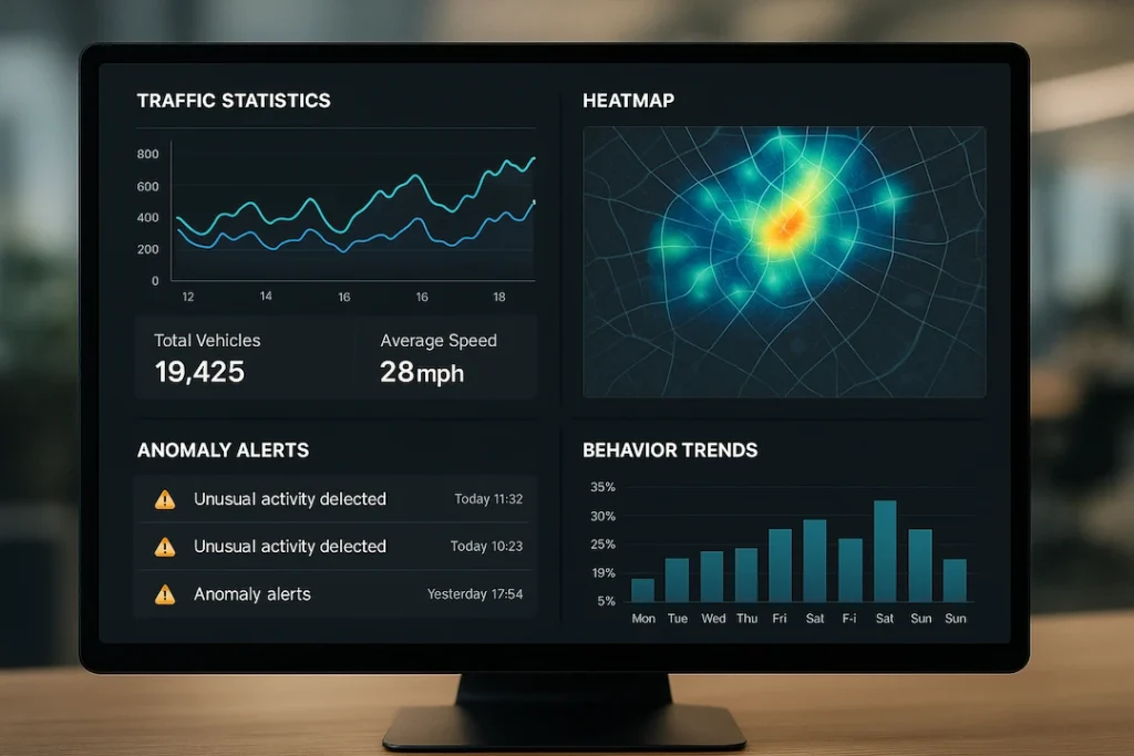 Our dashboards turn complex data into crystal-clear visuals. Get real-time traffic stats, heatmaps, anomaly alerts, and behavior trends — all in one clean interface. Designed for both operational teams and decision-makers, our analytics dashboards are customizable, intuitive, and built to scale with your business.
